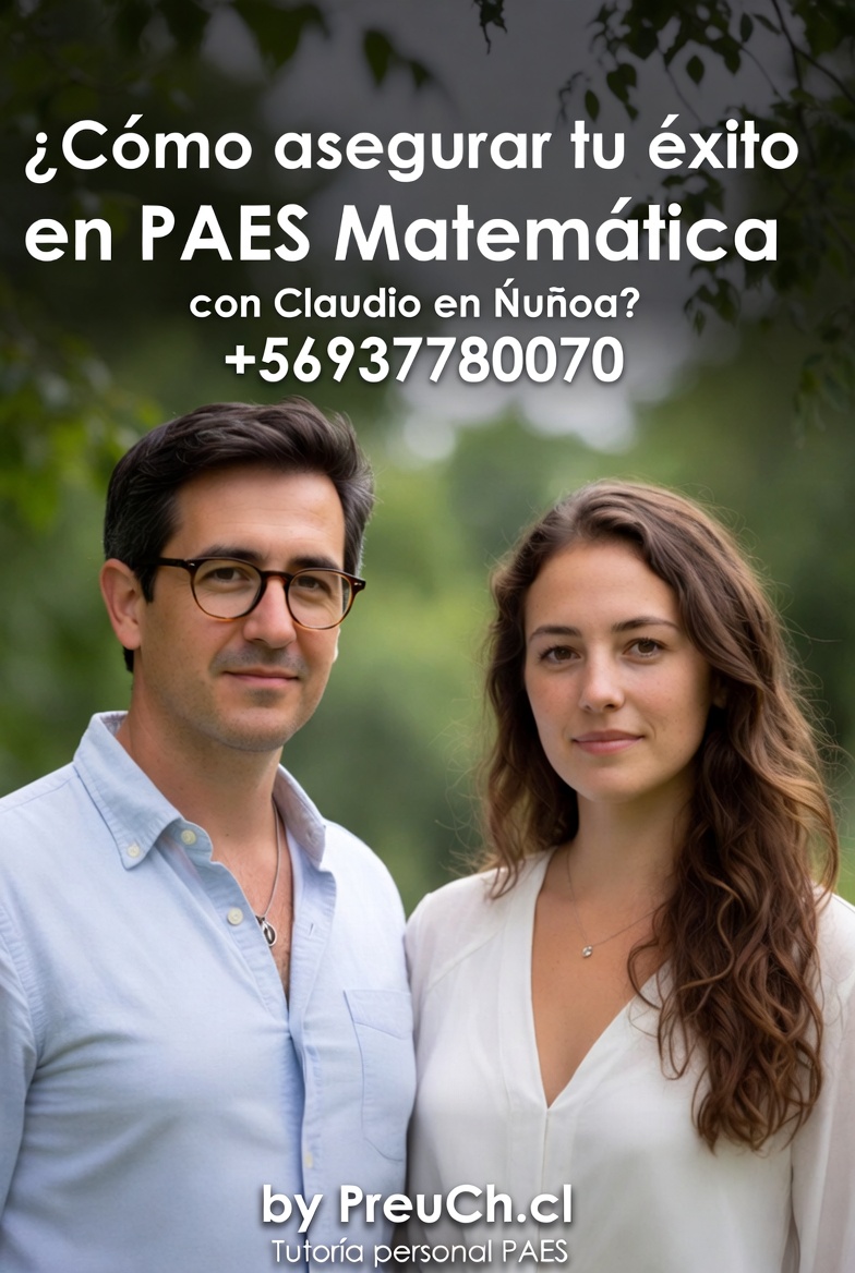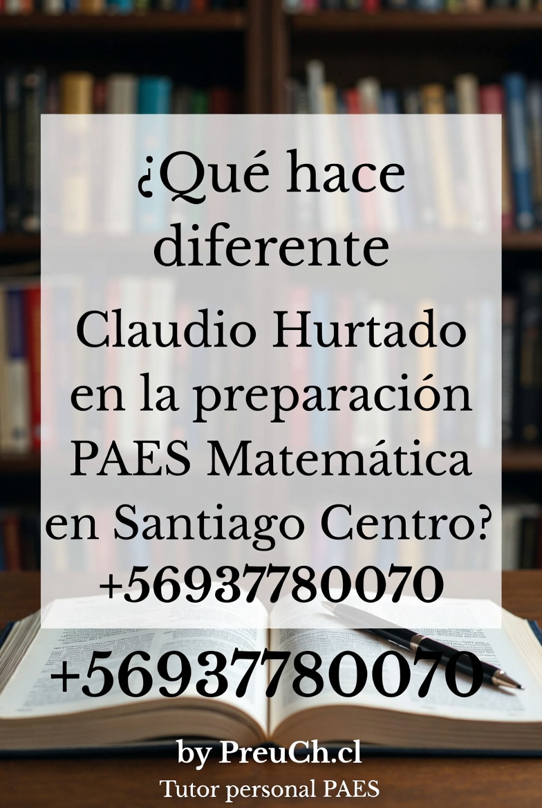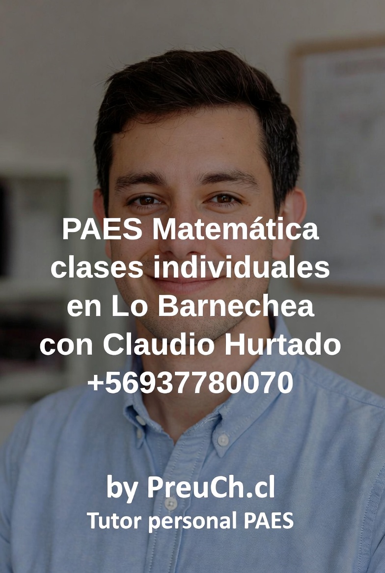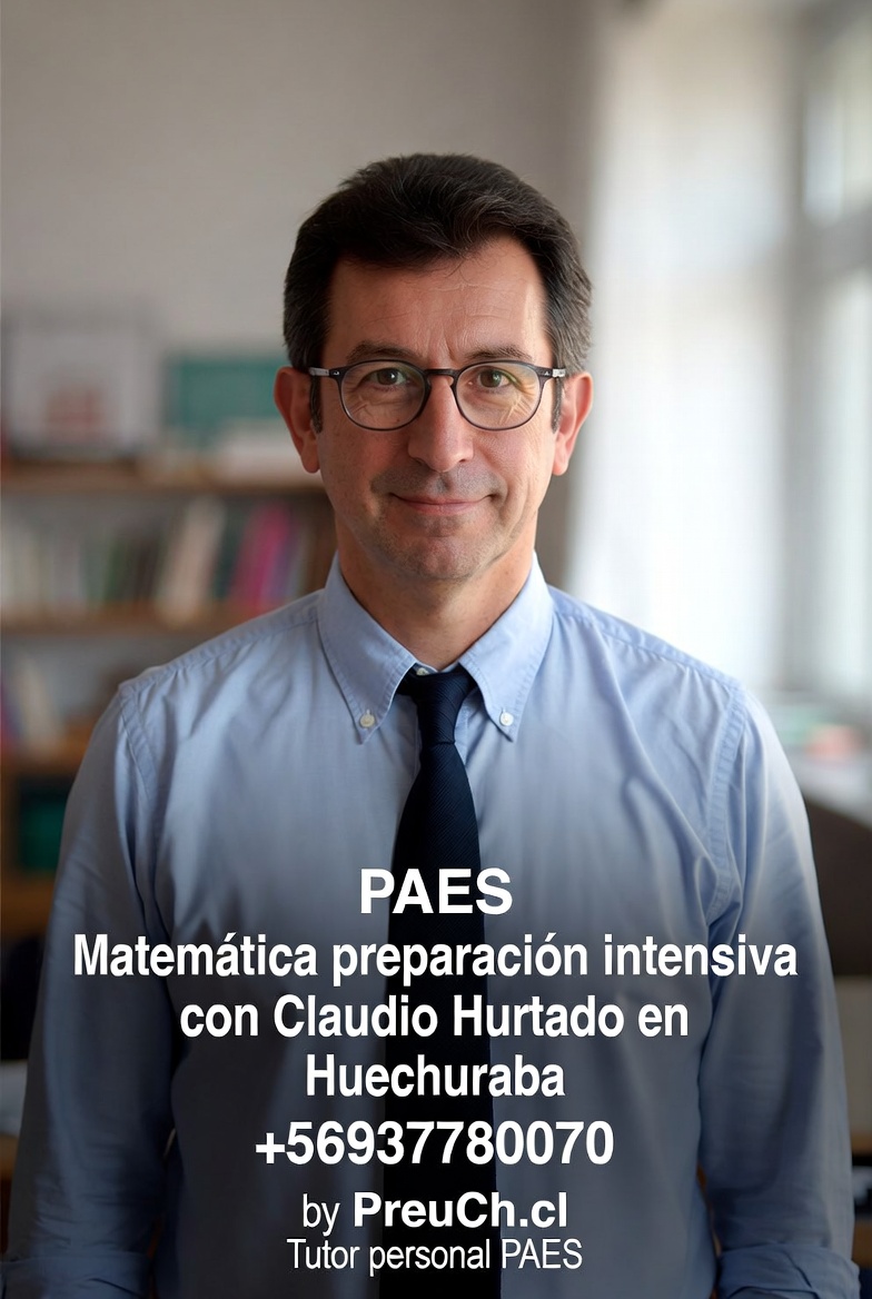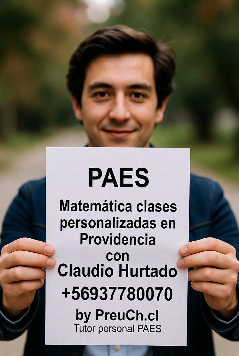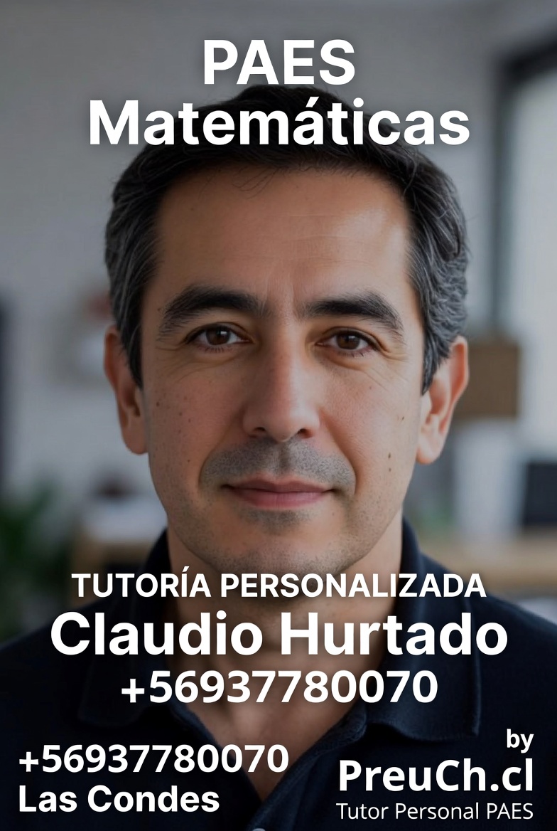 TUTOR PERSONAL PAES MATEMÁTICA M1 Y M2 CHILE | CLAUDIO HURTADO EX DOCENTE UC | +56 9 3778 0070 | WWW.PREUCH.CL ¿Buscas aprobar la PAES de Matemática y entrar a la universidad de tus sueños? ¡Prepárate con el mejor! Claudio Hurtado, ex docente de la Pontificia Universidad Católica de Chile y especialista con más de 20 años de experiencia, ofrece clases particulares personalizadas de PAES Matemática M1 (General) y M2 (Optativa) para el Proceso de Admisión 2026 en todo Chile. 📍 (…)
